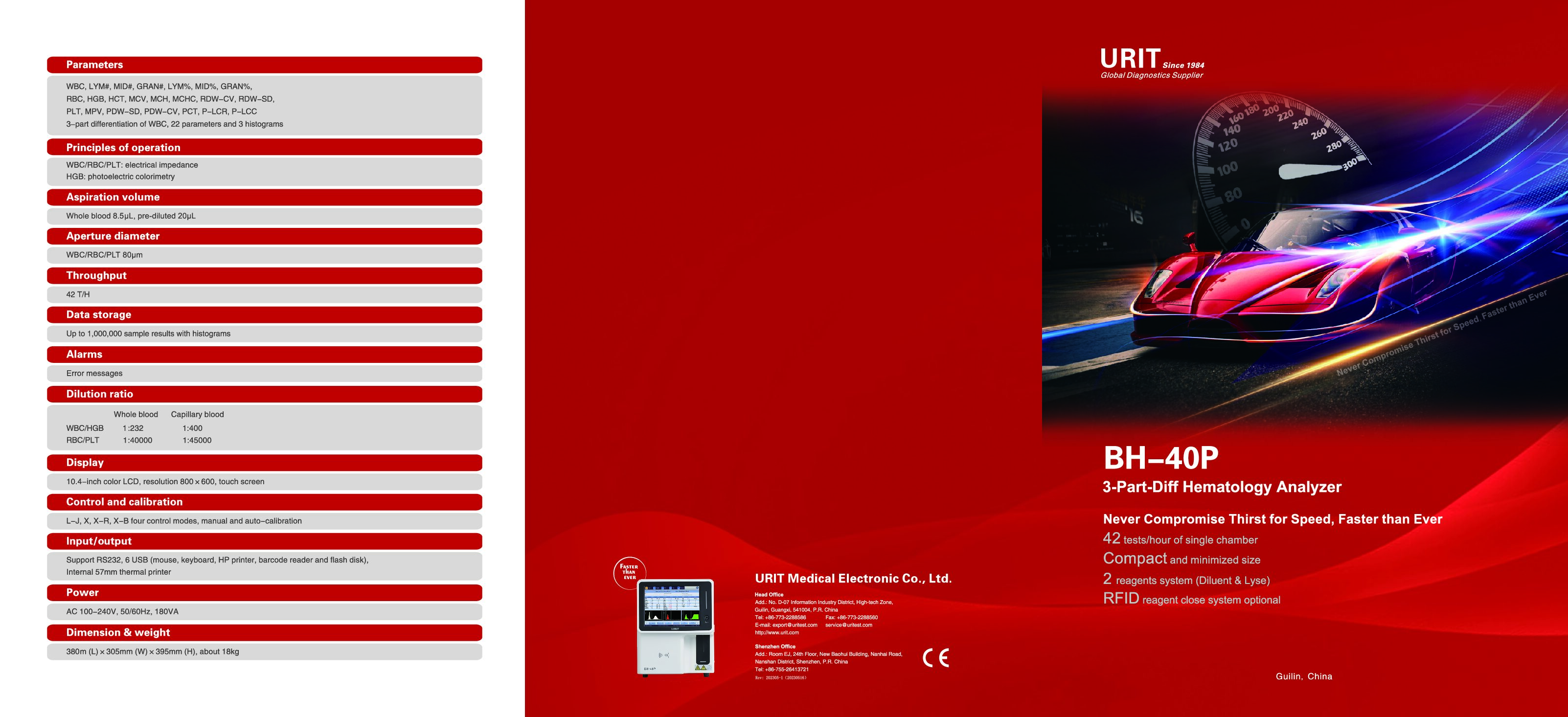 RDW-SD, PLT, MPV, PDW, PCT, P-LCR, P-LCC, Diferenciación en 3 partes de WBC, 21 parámetros y 3 histogramas