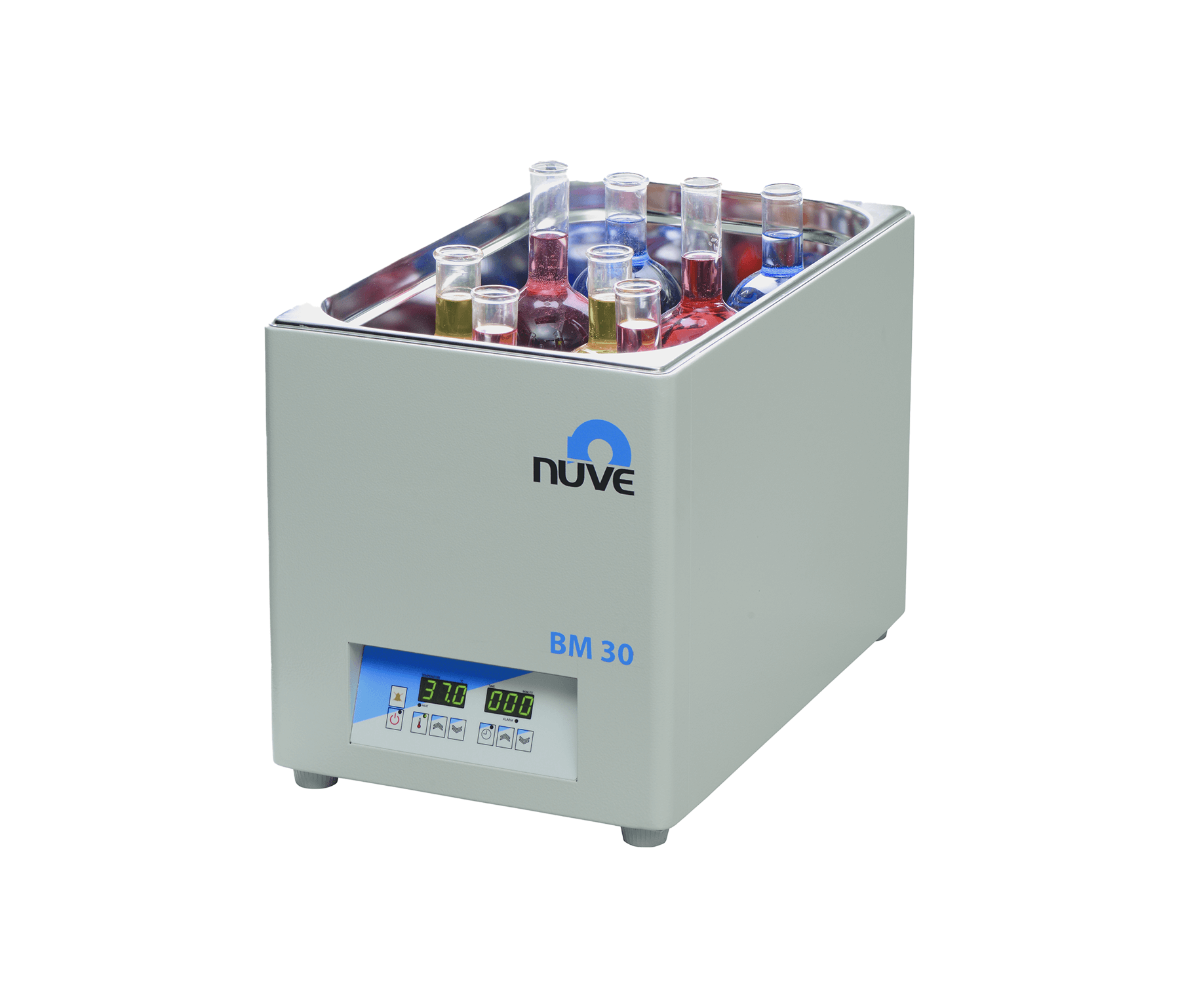 El Baño María con Agitación BM30 de NUVE es un equipo diseñado para ofrecer un control preciso de la temperatura en una variedad de aplicaciones de laboratorio. Utiliza el sistema de microprocesador N-Prime™, que garantiza una excelente precisión de temperatura, respaldada por un triple aislamiento que minimiza las fluctuaciones térmicas. Con un rango de temperatura que va desde la temperatura ambiente +5°C hasta 99.9°C, es ideal para mantener las muestras a condiciones estables. Su capacidad útil de 17 litros permite el uso eficiente del espacio, ya que la bomba de circulación y el calentador están ubicados fuera de la cámara, lo que maximiza el área disponible para las muestras. Además, el sistema de drenaje facilita la descarga rápida del agua, mientras que las pantallas LED brillantes proporcionan una visibilidad clara de los parámetros de temperatura y tiempo.