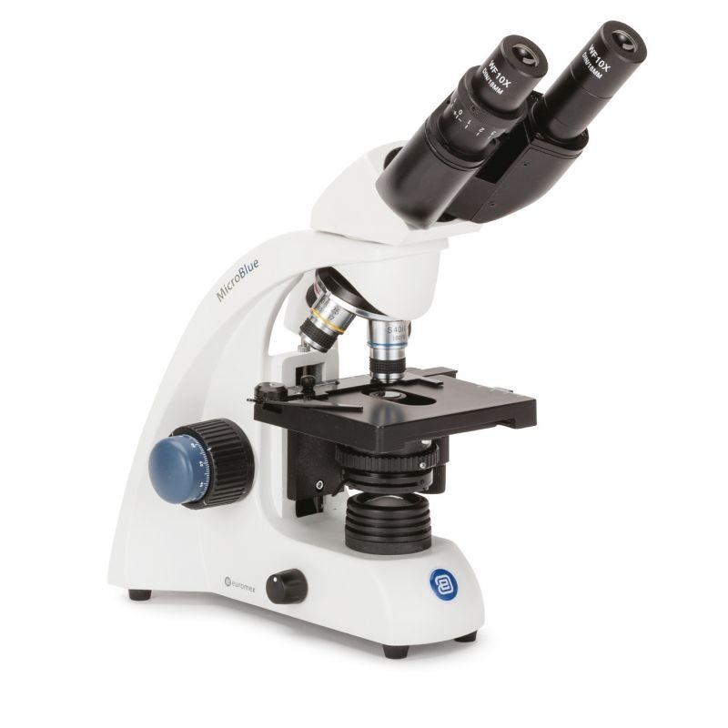 – Microscopio binocular MicroBlue con objetivos acromáticos de aceite 4x,10x, 40x, 100x